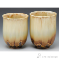 【清水焼 京焼 清水焼 京焼】 組湯呑 釉流彩(茶)