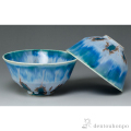 【清水焼 京焼 清水焼 京焼】 組飯碗 釉流彩(青)
