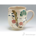 親しみやすいタッチで鶴.松.梅.見込みには竹が描かれています。たっぷり大容量で使いやすいマグカップです。