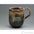 様々な釉色が混じりあって、幻想的な調和を見せています。夜明け前の仄明かりを連想させる色合いのマグカップです。
