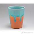 青い釉薬と緋色釉のコントラストが美しいフリーカップ。釉薬の流れ様が器に個性を与えています。