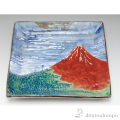 北斎の富嶽三十六景の一つを京焼の皿に表しました。赤富士が暖かみのある食卓を演出します。飾り皿としても最適な角皿です。