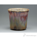 様々な釉色が重なり合って、幻想的な調和を見せています。夜明け前の仄明かりを連想させる色合いの焼酎杯です。