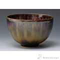 様々な釉色が入り混じり、幻想的な味わいを醸し出しています。夜明け前の仄明かりを連想させる抹茶碗です。