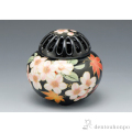 桜と紅葉が黒地に映える、小振りながら豪華な香炉です。年中飾れるインテリア小物として、記念品や贈答品にも最適です。