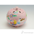 仲睦まじく水面を進む鴛鴦を交趾技法で表しました。丸みのある形状とピンクの色合いがかわいらしい香炉です。