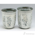 優しい印華紋(花の印を押しあてた紋様)にアクセントとして三色の色絵が差されています。洋にも和にも合う親しみやすい湯呑となっております。