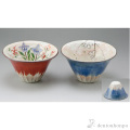 逆さにすると青富士、赤富士が現れるペアの小鉢です。内側には桜と秋草が立体的な線と金彩で華やかに描かれています。