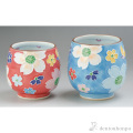 【清水焼 京焼】 交趾花絵 組湯呑 青 赤 ペア