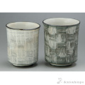 味わいのある網代のような表情の組湯呑。櫛目を、縦横の市松摸用に丁寧に施しました。大小でのコントラストが魅力です。