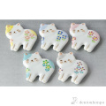 愛らしい猫の姿に、摘みたての可憐な小花をあしらいました。にこやかな表情にも心癒される箸置です。