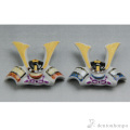 兜の吹き返しの部分など丁寧に描かれた赤と青のペア箸置です。鍬形の金色が美しく輝きます。