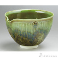 透明感のある緑の釉薬が美しい片口タイプの抹茶碗です。複数注ぎ分ける時などに適しています。