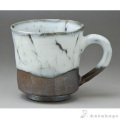 縮れた白釉から黒化粧が垣間見える、ユニークなマグカップです。モノトーンの対比がモダンな印象をもたらします。
