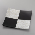 上下左右、どこまでも途切れることなく繋がっていく市松模様は「繁栄」を意味する縁起のいい模様です。艶やかな漆黒のプレートに金・銀を「もみ散らし」で市松模様を描きました。金黒・銀黒のコントラストが美しいモダンな市松模様でテーブルをスタイリッシュに彩ります。