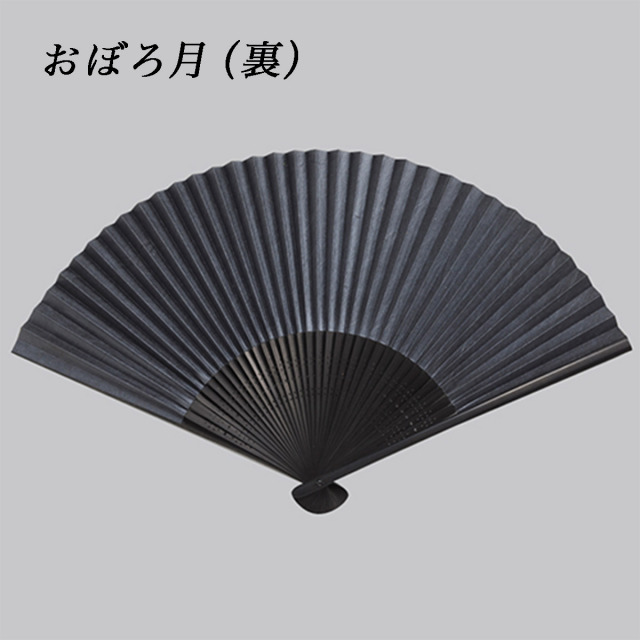 扇面、扇骨、組み立てまで、職人の手作りにこだわった扇子です。ちぎり箔と切り廻し、純度の高い金箔を2種類組み合わせることによりおぼろ月を表現しました。男女問わずモダンなスタイリングを好む方に贈り物としてもご自身用としてもお勧めです。