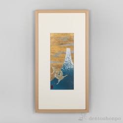 日本を代表する浮世絵師・葛飾北斎の晩年の肉筆画「富士越龍図」をモチーフに、450年の歴史を持つ金沢箔と現代素材を融合して仕上げたアートパネル。富士と龍は「不幸を断つ」という吉祥の象徴とされ、昇り龍は運気上昇を意味します。アクリルを用いた三層構造により、平面でありながら奥行きのある世界観を演出。小ぶりで軽く、手軽に飾れるサイズ感。客間やリビングなど日常に“福”を呼び込むインテリアとして、また長寿祝いや記念品、海外への贈り物にもおすすめです。