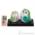 【九谷焼】夫婦ふくろう 紅梅 台・立札付