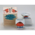 形違いの盃ペアセットです。九谷焼の職人による手作りの盃を、職人自ら絵付けした桐箱に入れてお届けします。平型でのんだり、丸型でのんだり、気分によって使い分けることが出来るので、疲れを癒す晩酌タイムにうってつけ。働くお父さんへの贈り物に人気の逸品です。