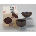 形違いの盃ペアセットです。九谷焼の職人による手作りの盃を、職人自ら絵付けした桐箱に入れてお届けします。平型でのんだり、丸型でのんだり、気分によって使い分けることが出来るので、疲れを癒す晩酌タイムにうってつけ。働くお父さんへの贈り物に人気の逸品です。