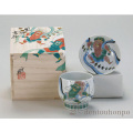 形違いの盃ペアセットです。九谷焼の職人による手作りの盃を、職人自ら絵付けした桐箱に入れてお届けします。平型でのんだり、丸型でのんだり、気分によって使い分けることが出来るので、疲れを癒す晩酌タイムにうってつけ。働くお父さんへの贈り物に人気の逸品です。