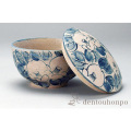 【九谷焼】蓋付レンジ鉢 おひつ 染付椿