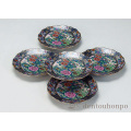 350年の歴史と伝統を受け継ぐ九谷焼は、明治時代に万国博覧会への出展を足がかりに、世界中から「ジャパンクタニ」と呼ばれ、一躍注目を集めました。九谷五彩と呼ばれる赤、黄、緑、紫、紺青で構成される鮮やかな色絵や、石川県が高い生産量を誇る金箔・銀箔を使った新たな技法など、時代に沿った革新を遂げています。