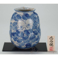 【九谷焼】花瓶 染付椿 7号 花台付