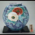 【九谷焼】花瓶 紅白牡丹 10号 花台付