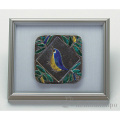 【九谷焼】陶額 色絵鳥 ガラス付
