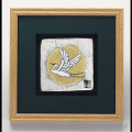 【九谷焼】陶額 金銀箔満月に鶴 ガラス付