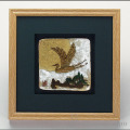【九谷焼】陶額 金銀箔飛翔鶴 ガラス付