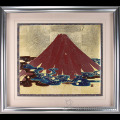 【九谷焼】陶額 金箔赤富士 ガラス付