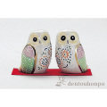 【九谷焼】ペア梟 白盛 2.5号 敷物付
