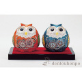 【九谷焼】ペア梟 盛 2.8号 台・敷物付