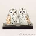 【九谷焼】ペア梟 白彩 3号 台付
