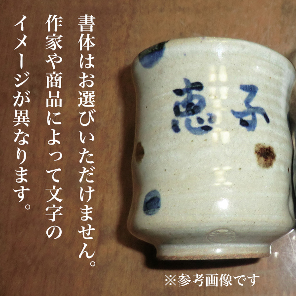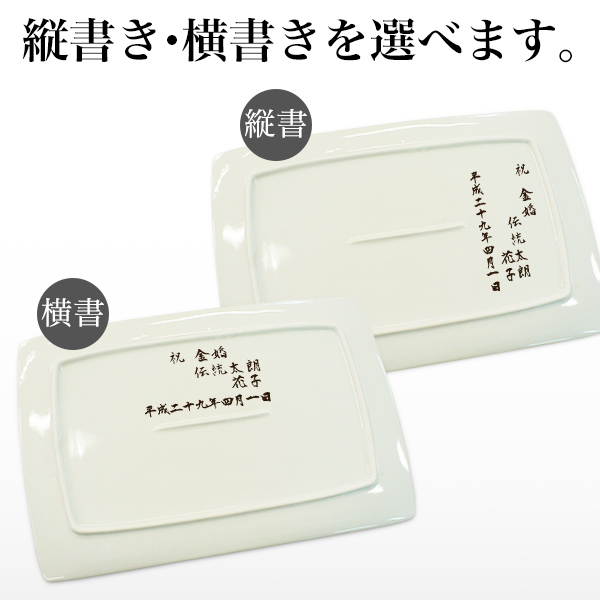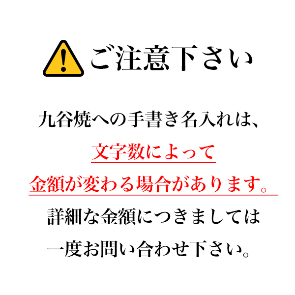 九谷焼の商品本体に印字致します。1個から注文が可能です。職人に一つ一つていねいに書いていただきますので世界にただ一つの贈り物になります。日本語だけでなく中国語に対応できますので、中国への贈り物にもご利用いただけます。