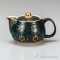 【九谷焼】ポット急須 青粒鉄仙 網付