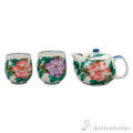 【九谷焼】 くつろぎ揃 牡丹 夫婦湯呑・急須セット 網付
