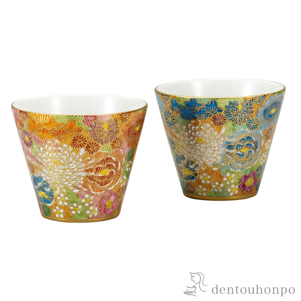 【九谷焼】 ペア焼酎カップ 金花詰