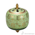 この高級香炉は、美しい九谷焼の技を凝縮した逸品です。白粒鉄仙がエレガントに描かれ、きみどりの地色が上品な和の雰囲気を醸し出します。一つ一つが丁寧に仕上げられ、まるで芸術品のよう。大切な時間に、心地よい香りとともに日本の伝統美を感じてください。洗練された逸品は、特別な空間にふさわしい一品です。