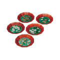 【九谷焼】 皿揃 赤巻絵変り 5.2号