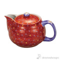 【九谷焼】 ポット急須 朱巻小花 網付