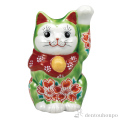 【九谷焼】 招き猫 グリーン釉桜 3.3号