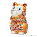 九谷焼の高級お祈り猫は、オレンジ釉で彩られた桜が華やぎを添えます。その愛らしい姿は空間に和やかさと幸運を運び、心に安らぎをもたらします。精緻な技の結晶を手に入れ、日常に特別なひとときを。職人の心が込められた逸品で、大切な方への贈り物にも最適です。