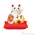【九谷焼】 達磨招き猫 祝鯛 5号 布団付