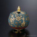 歴史が息づく九谷焼の豆香炉。盛金技法で描かれた宝相華唐草文様は、空間に上品な華やかさを添えます。手に馴染む2.8号サイズが日常を特別にし、青粒の上品な煌きが心を落ち着けるひと時を演出します。美術品としての高い価値を感じながら、香りと共に贅沢な時間をお楽しみください。