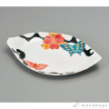 【九谷焼】 木の葉型盛皿 色華蝶紋 9.5号