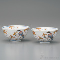 【九谷焼】 組飯碗 山桜に鳥 ペア