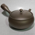 四日市萬古焼の伝統工芸士、山本太仙作の急須です。太仙の急須は手作りの雰囲気を残した温かみのあるフォルムが特徴的です。陶土を主成分とし内面に釉薬を使用していない萬古焼急須は陶器・磁器のどちらでもなく「陶土器」になります。陶土器急須は土含まれる鉄分と茶葉の相性がいいので渋みを取りまろやかな味わいになることが特徴です。茶漉しはステンレス製ではなく一個一個手作業で開ける伝統技法「共茶漉し」が使用されています。ステンレス製の茶漉しと比べて茶渋の付着による目詰まりも起こりにくく長く愛用いただけます。